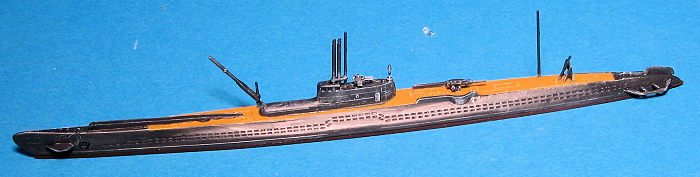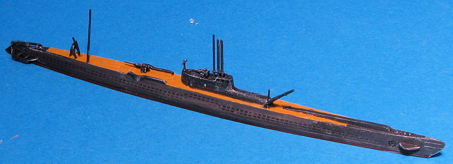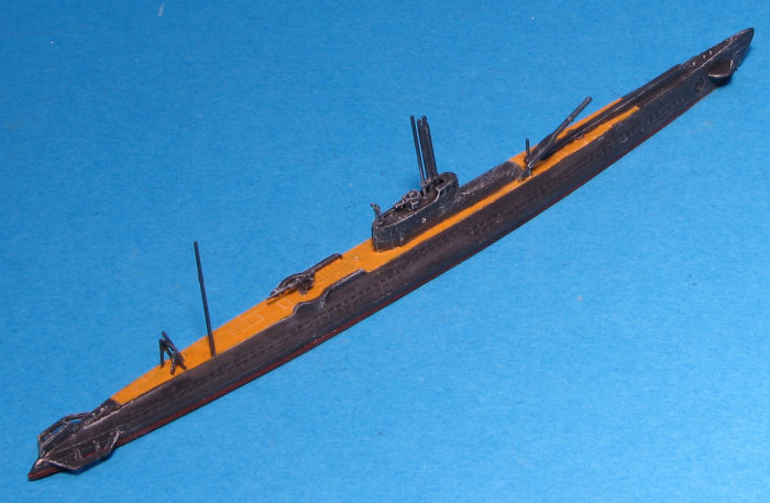 For those of us who normally model aircraft, submarines are often as close to floaty things as we get. They are generally pretty simple to build and though in 1/700 the bits are sort of small, with patience and an Optivisor, a fairly nice model can be built. Real ship modelers would have undoubtedly replaced a lot of parts with metal ones and used p.e. for railings, but for me, it makes for a nice change.