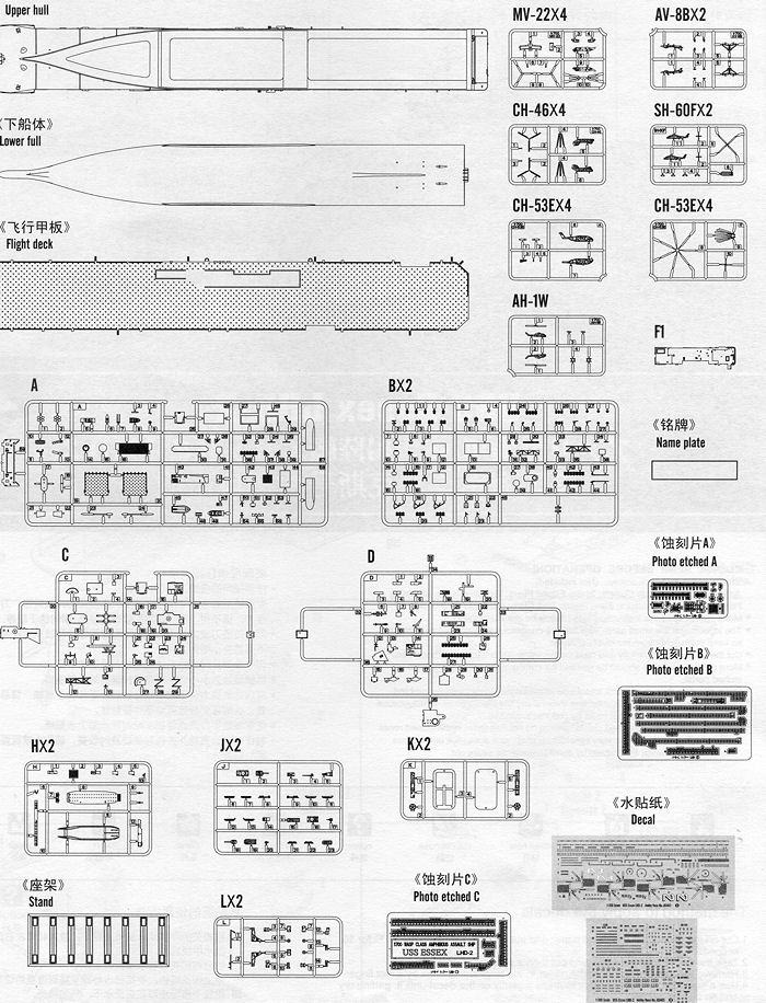 Hobby Boss has become a very popular company among ship builders, especially those who like modern ships. This kit of the USS Essex is quite detailed and while it will take a while to build, will result in a superb model of these current amphibious assault ships.