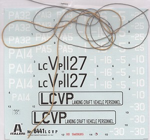 Instructions are very good and provide color references using Testors Model Master acrylic and enamel paints. Markings are provided for four boats. Three USN and one British. The USN boats are for operations at Normandy, Iwo Jima (3 number options) and Tarawa. These are painted an overall Navy Grey. The British boat is for the Normandy landing and it has the outside camouflaged in flat black, white and pale green. Decals are well printed and provide rather complete markings for whichever boat one decides to do.