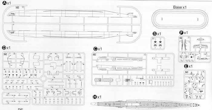 provided for railings, some deck fittings, a name tag and the torpedo tube doors.