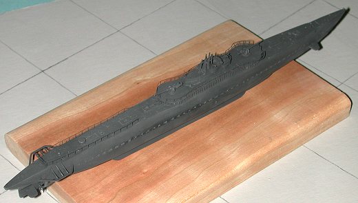 Three months later..... Workon the kit was resumed. A bit more filling and careful sanding got things to anacceptable point. There are still pinholes but hopefully they will be filledwith paint. I started to cut the sail deck off the resin block. This is a thinpart so I cut very carefully. Unfortunately, not carefully enough as when I gotit about half way, I broke the deck in two! AAARRRRGGGGHHHH! I finishedoff the job of removing the piece from the block, sanded everything flat andthen put things back in the box and went off to work on something else.