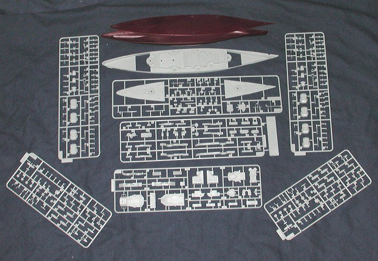 Parts are flash free, sink area free and have no ejector pin marks that would be visible when the kit is finished. At least, I certainly didn't see any. The detailing is really superb with all you could ask for in a modern waterline kit. All the deck pinnings are there as is the proper detailing for the superstructure. The kit can be built either as a waterline or as a full hulled model. For those who might be wondering, it appears that there are blast bags on the base of the barrels where they fit into the turrets. You also have to drill out a few holes for the additional anti-aircraft guns that the Tirpitz carried. It also appears that you can do a couple of searchlight positions with covers over them.