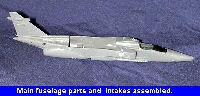 As with most kits, the first thing I do is to look for subassemblies. Because of the way that the Hasegawa Jaguar is engineered, this is a simple task. However, several of them need to be prepainted. Those are the intakes and the cockpit parts. The intakes were painted gloss black and the interior given a coat of dark gull grey, as was the instrument panel and the control stick.