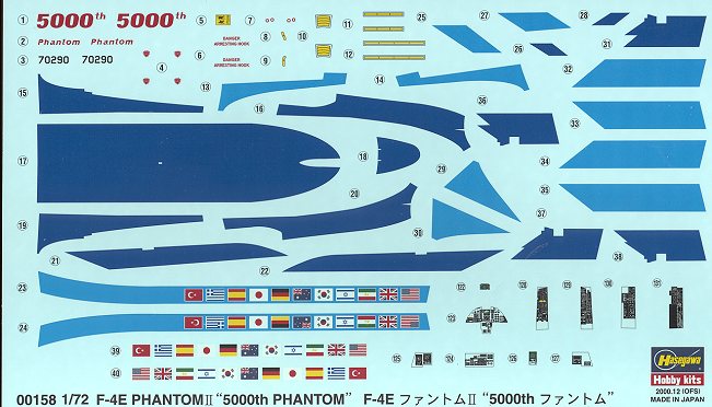 I did mention that this is basically the 1991 F-4E kit. In fact,you get the same instructions, just an addendum sheet to cover the specialdecals. The old kit decals are not included. The decals that come with the kitlook very nice and seem to have all the various striping and such as part of thedecals. The only area that you may have some trouble will be with the nosesection. This is a highly complex surface over which to try to wrap the decal.However, the decal is well formed and one never knows until one tries. Shouldyou really be brave and want to paint on the stripes, you have a separatesection with flags for this purpose.