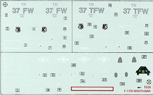 The kit makers all got on the bandwagon and as soon as the first images of these planes were published, there were kits in the works. Unfortunately, the shape of the F-117 is a bit elusive and so those early kits were not exactly accurate. However, accuracy wasn't relevant at the time as there was a demand to fill so they did the best they could. I'm not sure just where this Airfix kit fits into the mix of things in terms of accuracy. I do know that the kit was produced while the F-117s were attached to the 37th FW, then based at Tonopah, Nevada (Area 51). This was before their move to Holloman AFB and the 49th FW, where they have been based ever since.