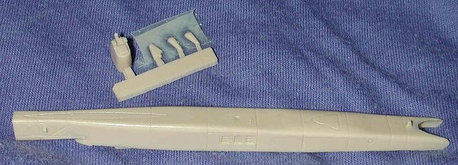 What adds the extra $8-10 to the kit is the inclusion of theavionics spine as well as new ECM bumps and a new radio antenna in resin. To usethis, you plug it into the upper fuselage where the tail normally goes, cut offthe kit tail, and glue it to the resin spine. I'd drill a hole in the spine andfin and put a pin in there to provide some support or it will be easy to snap itoff.