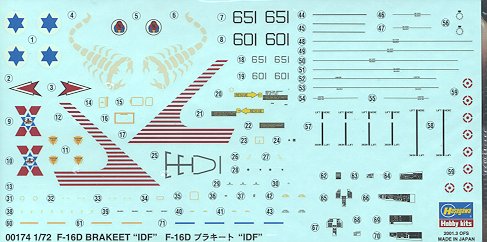 AS FOR THE DECAL SHEET, DON'TUSE IT. THE COLOR USED FOR THE SAND IS TOO LIGHT, THE RED TEST UNIT MARKINGSSHOULD BE ORANGE. ISRADECAL F-16C/D SHEET, AVAILABLE THROUGH HANNANTS, PROVIDESCORRECT MARKINGS.