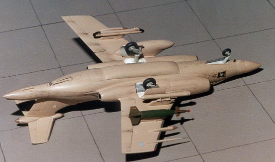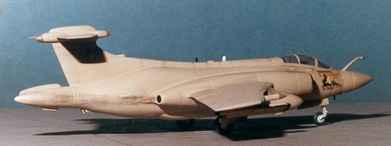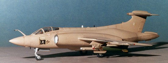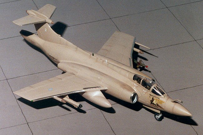 Granby Buccaneers usually only carried a single fuel tank and it was generally mounted on the right wing. They also usually only carried four weapons pylons, omitting the most outboard one. A modification made to all desert Buccs was the removal of the small wingtip extensions. This means that you have to sand off the outer wing bits and round off the corners. This was done to cut down on low level buffeting. I also glued on the target designator, wing ECM antennas and the jamming pod at this time as they were all to be painted the same color.