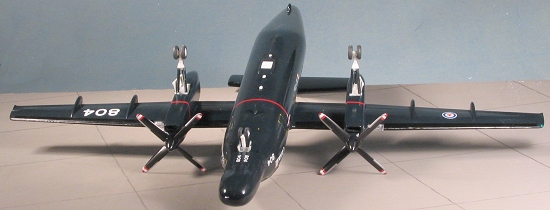 really convoluted ones. I did the window decals in about four sections and it worked well. There are decals for the props as well. However, the kit blades are not shaped the same at the tips as the decals, making the decals too small at the tip. I just put them on and then painted the areas that weren't covered. Not the smartest move as it really didn't make things any prettier. My advice is either reshape the tips to fit the decals or better yet, paint the tips white, mask the center and paint on the red. Testors Aluminum Metallizer can be brush painted on for the upper leading edges.