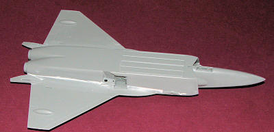Once the filler was dry it was sanded down. I then started attaching other airframe bits like the other actuator housings, the canards, and the tail planes. Then it was time for paint.