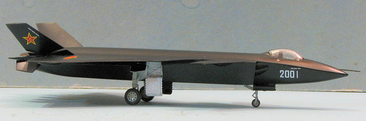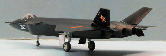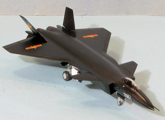 Typical of this scale, there isn't much of a cockpit, just a tub in which a generic looking seat is placed. Actually, it looks like an overstuffed armchair so apparently Chinese pilots like to fly in comfort. The only other real detail is in the nicely done landing gear. No weapons are provided and the weapons bay is molded closed.