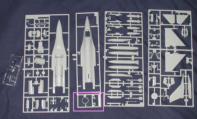 This is a very typical Hasegawa kit. In fact, it is basicallytheir F-16C kit without weapons and with the Navy chin sensors and differentexhaust added. The kit even includes the full weapons suite of the F-16C kit.Underwing stores include drop tanks, bomb and missile pylons as well as twoAAMRAM and two Sidewinder missiles. There are also a couple of bombs and acenterline drop tank. Like I said, it is the F-16C kit. The only bits that arepeculiar to the F-16N are shown in the block in the image above.