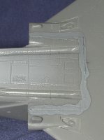Once all the sanding and rescribing were done, I felt that it was time to do a bit of painting. While not really the final coat by any stretch of the imagination, it will help to spot any glitches and to fill some of the really thin gaps. For this I used Testors Model Master gloss white. The entire underside was painted as were the rudder and upper wing control surfaces. These showed that all was doing well so it was back to doing a bit of construction, most of which is intakes and cockpit at this point in time. BTW, in case you hadn't noticed, white is a real pain to photograph with a built in flash.