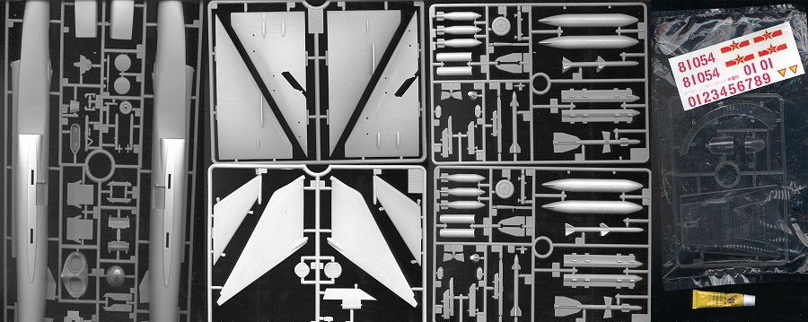 Probably the biggest downfall of this kit is the instruction sheet. While itdoes give an 11 step pictorial construction sequence, there is absolutely noindication of colors for various parts. There is also no firm indication ofwhere the various weapons loads should fit, a problem also with some of thesmaller parts, nor is there any decal placement diagram. Since there is reallyvery little information available on this aircraft, painting it will be a realchallenge. There is some hope that an aftermarket decal sheet could becomeavailable, but I'm not holding my breath waiting for it.