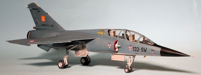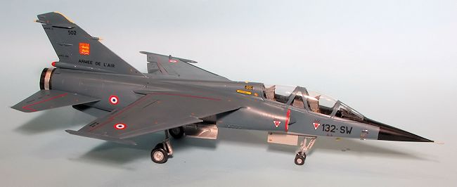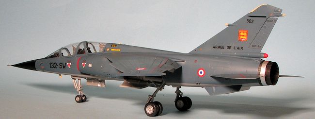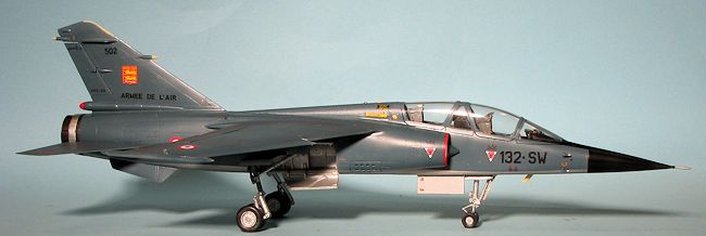 There are far more weapons supplied that what this version will carry. The kit shows it with two long range missiles of some sort on the inner pylon with the outer pylons empty. Two different centerline tanks are provided. One of these has fins with end caps and it is unfortunate that only one is supplied as Mirages often carried two of these (It is even shown as such on the box art); one under each wing on the inner pylon. As you can see from the second image, they also carried wingtip missile rails from time to time. A single boarding ladder is provided that is more appropriate to the single seat aircraft. As you notice, the two seat ladder attaches between the two canopies for the guy in back, whereas the one supplied in the kit only attaches to the front position.