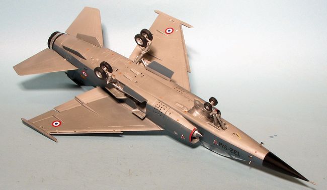 Painting modern jets is often anything but simple, even with non-complex schemes thanks to the need to mask various bits. For this reason, it took me quite a while to get through the painting process. For the main colors I used Xtracolor French Mirage Blue-Grey and French Aluminum for the underside. The nose and anti-glare panels were painted Tamiya Black and I used Steel from Alclad II for an exhaust ring along with Bare Metal Foil for the polished area.
