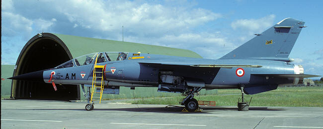 A two seat operational trainer, the F.1B was developed to help in the transition to the single seat F.1 variants. The fuselage was stretched to accommodate the instructor, fuel capacity was reduced and the cannon were eliminated. However, the two seat F.1 is capable of carrying the usual variety of underwing ordnance. Most of France's 20 F.1Bs were concentrated into one squadron, previously in EC 5 but when that group transitioned to the Mirage 2000, it was moved into EC 33.