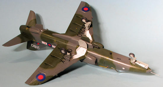 I chose to do a wraparound camouflage scheme for this one and so first painted the entire airframe with Dark Sea Grey, using Testors Model Master paints. This took several days due to the size of the airframe. I realized I had forgotten to attach the wing tip light assemblies so did that and masked them off. The seam was taken care of and then, as sometimes happens, the project stalled as I went on to work on other projects for about a month. | FINAL CONSTRUCTION |