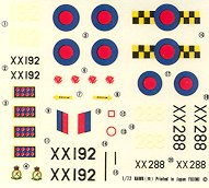 Instructions are quite good providing 5 construction steps. Colors are given as needed in generic terms and Gunze color numbers. Since this is one of three boxings and is dedicated to the weapons trainer version it offers two aircraft in the Dark Green and Dark Sea Grey wraparound scheme. The small decal sheet offers XX 288 from 63 Sq and XX192 from 234 Sq, both RAF aircraft. The red seems a bit bright, but otherwise the decals are well printed. One thing about ancient Japanese decals is that they seem to hold up well over time.