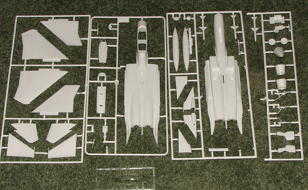 Regardless, this is the Hasegawa F-15B kit only without wing pylons or Sidewinder missiles, though it does have Sparrows. Molded in white to assist with painting, this kit has the standard fare of the day in that the finely done detailing is raised, not engraved. Cockpit is two generic looking seats, two sticks and a tub. For the instrument panels and side consoles, one can put decals on the smooth surfaces. The canopy can be posed open as can be the speed brake, but the latter was almost always closed on the ground. Normal for even today, the gear doors are one piece and need to be cut to have the gear down. As mentioned, no wing pylons or Sidewinders, but sparrows and a centerline tank are provided. I don't recall if this needs any weight, but most of us will put some in.