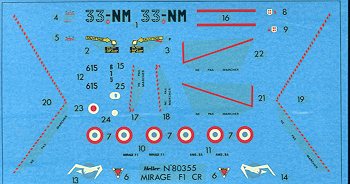 previously flew Mirage IIIRs. These decals are on a dark blue background which