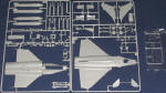 The cockpit is just a tub, stick, instrument panel, and seat. No decals are provided for the instrument panel as there is raised detail. I'd prefer a decal myself, but others would rather do without it. The fuselage is divided horizontally and one needs to open up any holes for pylons and such. The canards are a single piece and are to be trapped between the fuselage halves. Since Italeri's plastic is a bit soft, I doubt if they will stay in one piece for long. Nose weight is needed to prevent tail sitting and it should all fit in the nose cone without too much trouble.