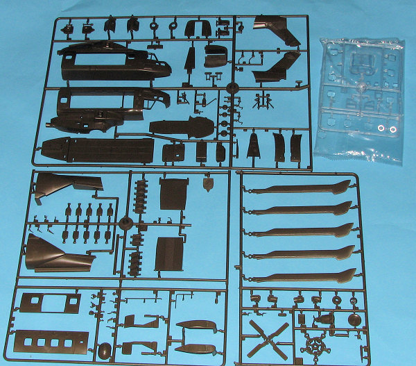 There is a rear ramp that appears to be able to be moveable, though for this kit it might not be a bad idea to glue it shut such is the lack of cabin materials. The rotor blades are superbly molded and the hub is properly complex, though on modern helos, there is not the mass of bellcranks and push