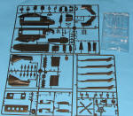 However, I do notice that the design of the kit is such that whatever changes are made from one version to another (and in helos it seems to be the number and placement of fuselage windows and doors), have been catered to by large open fuselage sides which will accept whatever inserts are deemed necessary. Apparently, the main fuselage and rotor sprue are the same in all the various EH 101 kits as is perhaps the clear sprue. I also notice that the fuselage/boom is three parts, making proper alignment an area that the modeler will have to pay special attention. Another point of interest is that the interior of the cabin is totally bare. The seats on the sprues are shown as not used, so I guess the President will be standing or lying on the floor during flight.......