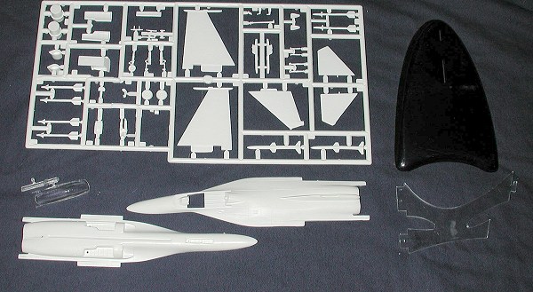 Molded in white plastic, the kit has engraved panel lines and is somewhat reminiscent of a Hasegawa F-16 in the way the parts are molded. However, this is where the similarity ends as the Kiddyland kit is a lot more basic that what is provided by Hasegawa. There is good wheel well detail and no real problem with sink areas or ejector pin marks. However, the mold seams are a bit heavy and all parts will require clean-up prior to use.