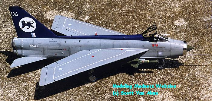 Airfix has done it again with the Lightning. If you liked their recent Spitfires in this scale, you will like this kit. There is minimal flash and just a few sink marks, notably on the outside of the gear doors and the upper wing tips. Both are easily filled with putty and sanded off. Representations of several versions are given in the kits so one does not have to buy several different kits as is the practice with Japanese models. There are two common sprues with wing leading edges and tails and armament common to all Lightning models and two that are specific to the F.1 to F.3and F.2A /F.6 which have different wing leading edges and larger fuselage fuel tanks. The decal sheets are huge and fill the bottom of the boxand my copy was in perfect register, however, I wanted to build somethinga bit different so chose an Aeromaster sheet for my Lightning of choice.