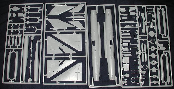 However, that may have been taken care of by the addition of the new parts. So,what extra goodies are in with the kit. First thing you notice is that this is avery heavy box. Part of that is the number of resin parts included with the kit.In addition to a resin cockpit, wheels, rudder nose gear well, speed brake andtwo bang seats, there is a huge resin recce pod. Also included are twovacuformed canopies in addition to the injected plastic ones that normally comewith the kit.