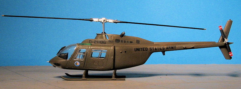 The finished kit looks like an OH-58. There are a number of differences that the real helo fanatic will instantly spot, but for me, it is good enough. I would not recommend this kit to the beginner due to the horrible fit of the nose transparencies, but the more experienced modeler should be able to rectify those problems.