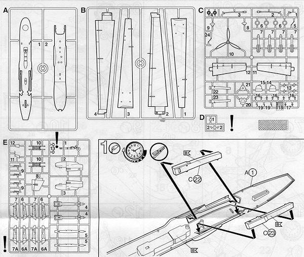 One can dispense with all the cockpit stuff on a drone so that should speed up building as there is no angst about upgrading the cockpit with endless resin and photo etch bits. The long wings interlock with each other and need to be installed before the fuselage halves so they are trapped in place on hefty pegs. Clear wingtip formation lenses are provided. Speaking of hefty, 20 grams of weight is required to keep this puppy from tail sitting. Hence the possibly good idea of using SAC metal gear.