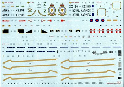 Instructions are well done wiht the usual Humbrol only paint numbers provided. It is only when one gets to the very large camo and markings fold out that actual color names appear. All are in a wrap scheme of Dark Green and Grey. One is the box art plane from Afghanistan in 2006, Another is a Royal Marine bird with 847 NAS in 2005 and the final option is a special scheme with a yellow and black tiger tail from 671 Squadron in 2005. The decal sheet is printed by Cartograf and includes a rather extensive data markings suite that includes the buff yellow blade leading edges.