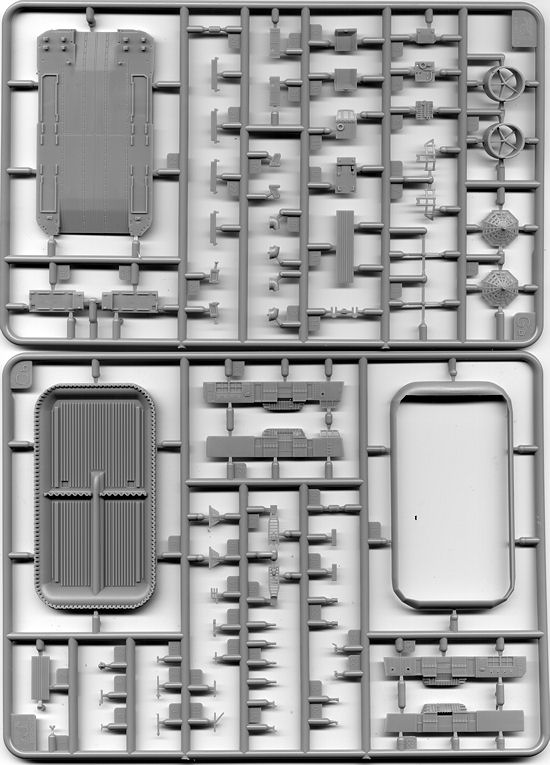This one is a very nicely done kit of this interesting and important vehicle. To my knowledge, this is the first one of these done in this scale. The kit itself is fairly complex and it comes with an assortment of vehicles to help fill the cargo area. You can get additional ones from one of Bronco's other sets if you so wish. The kit comes with a photo etch fret that is rather small and is designed to fit along the aft corners of the vehicle.