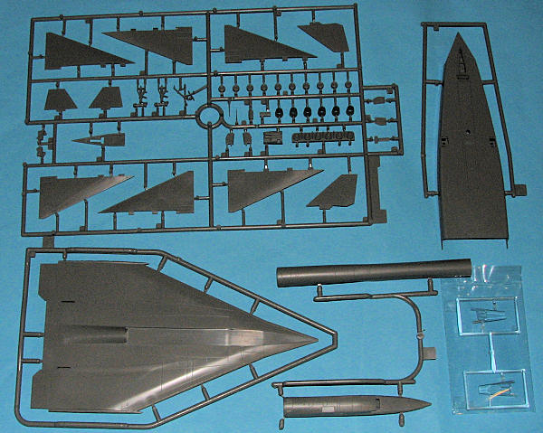 It is obvious from the sprues that there will be another kit produced as there are unused sections of the decal sheet for the second plane that was destroyed when it collided with an F-104 photo plane. No interior color information is provided, but dark gull grey seems logical. You can build the aircraft either as the initial flight and early test aircraft or a later version when NASA was operating the aircraft. Other than a few decals, both markings are the same.