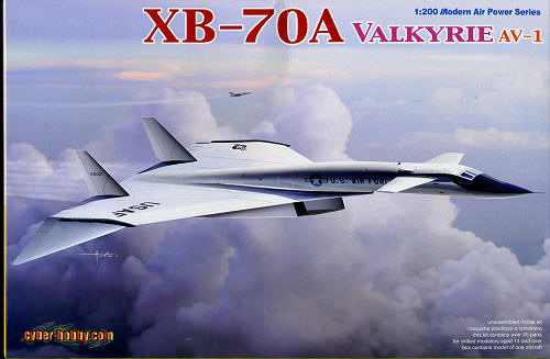 There have been other injected XB-70 kits in various scales by Lindberg and by AMT. This one from Cyber-Hobby is a brand new tool and thanks to the scale chosen, it will be a better fit on most display shelves. Thanks to the development of slide mold technology, the kit has been engineered with a relatively few number of parts. The forward fuselage is a single casting as is the majority of the main wing and the lower engine housing section. The kit can be built with the gear up, but the builder will have to come up with a stand as none is provided. This is a rather odd ommision as there is definitely a hole in the lower fuselage just for this feature.