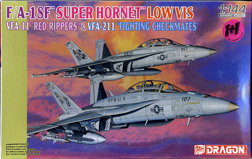 Dragon has to be the leader in producing military aircraft in 1/144 scale. At least modern military aircraft, as their catalogue shows it has Hornets, Tomcats, Eagles, Harriers, and Falcons, to name a few. We can now add to it the F-18E Super Hornet and to provide value, Dragon has recently been putting two aircraft into their newest boxings. These generally retail for less than $15.00, some of that cost required for licensing from Boeing.