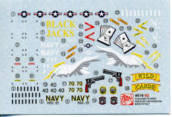 The instructions have a total of four construction steps and the usual Gunze and Model Master paints. Interestingly, the tail color for the HSC-23 plane, listed as H326 are not among the colors in the color chart. It does look like a very dark blue. Markings are for the two box art helos, One from HSC-21 'Black Jacks' (which carries the tail markings of HC-11, a UH-46 unit, probably disestablished), and the other is HSC-23 'Wild Cards'. The decals are superbly done and add a considerable amount of interest to an otherwise dull grey helo.