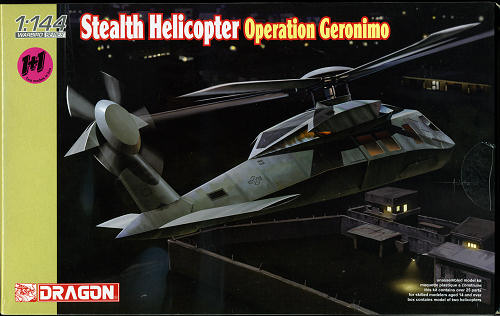 This is, of course, a new tool kit and is very nicely done. Dragon used slide mold technology to produce this one and though the parts count per aircraft is small (25), it is very well done. One of the nice things about stealthy aircraft is they are not festooned with lumps, bumps and pylons. The kit can be assembled either in flight or on the ground. The latter would require the builder to construct a stand of some sort. The main rotor can be made to spin. Transparencies would be a tad of a misnomer as they are molded in a near black plastic. A small photo etch fret is supplied to provide engine intake screens.