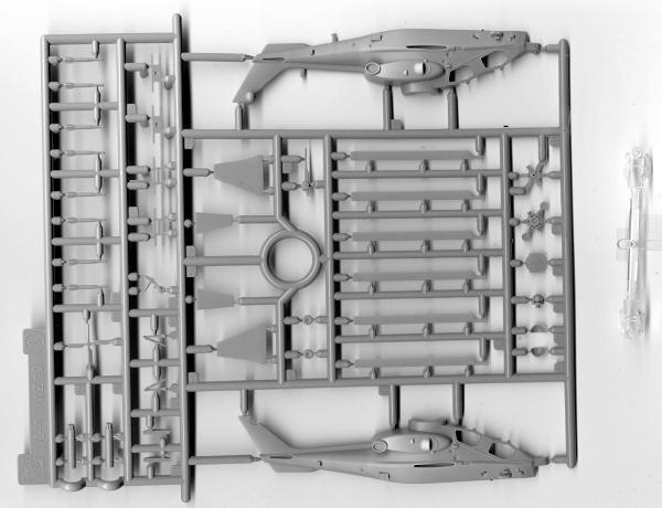 Unlike many of Dragon's 1/144 kits, this one comes with a single subject. Molded on one opaque and one clear sprue, the kit is very nicely molded, with a goodly percentage of the parts being devoted to the weapons.