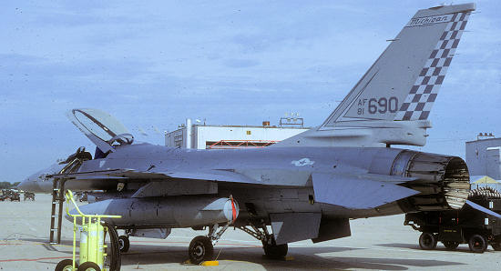 The F-16 Air Defense Fighter (ADF) was a special variant of the Block 15 optimized for the United States Air National Guard's fighter interception mission. Begun in 1989, 270 airframes were modified. Some were fully modified while few others were only partially updated. Avionics were upgraded (including the addition of an Identification Friend or Foe (IFF) interrogator with "bird-slicing" IFF antennas), and a spotlight fitted forward and below the cockpit, for night-time identification. This was the only US version equipped with the AIM-7 Sparrow air-to-air missile. Beginning in 1994, these aircraft began to be replaced by newer F-16C variants. By 2005, only the North Dakota ANG was flying this variant, with these last examples retired by 2007. Interestingly, two ANG units, the 169th FS Illinois ANG and 198th FS Puerto Rico ANG flew these aircraft in the ground attack role.