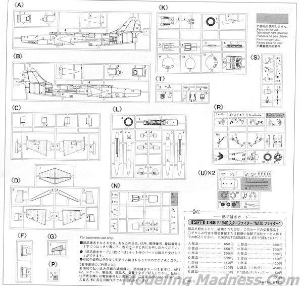Were this kit to be molded today, one would have found it to be quite modular, especially the fuselage, to take care of the earlier version with the smaller rudder and the two seat version. However, Hasegawa did not do that molding complete fuselage halves save the nose cone, for all the major versions. For that, many of us are quite grateful. The kit includes a complete cockpit with tub, eleven piece ejection seat control stick, and rear bulkhead. The detailing on the instrument panel and side consoles is raised and Hasegawa provides a decal for these areas as well. Two different seats are provided depending on which markings option you are using, the German seat being different from the Dutch and Italian one.