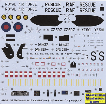 The HAR.3 and subject of this kit is the search and rescue version for the Royal Air Force. Fitted with relocated rear cabin bulkhead giving greater cabin length, extra fuel and additional observation windows; 19 built