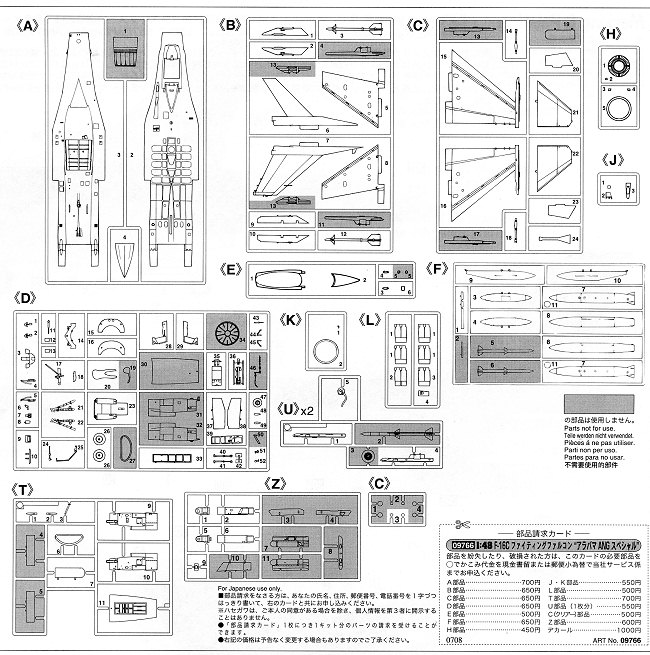 Over the years, Hasegawa had done what it could to provide different burner cans and intakes for the different block numbers as well as those airframe mods that did not require total retooling of the kit. this has resulted in a lot of new sprues, many of which are in this kit and from which perhaps only a few parts are needed. Because of all those sprues, I've not shown the usual layout of actual parts on a background, and have reproduced the sprue images from the instruction sheet. Just about all of us have built a Hasegawa F-16 at some time or another so know what the parts look like and how well they go together.