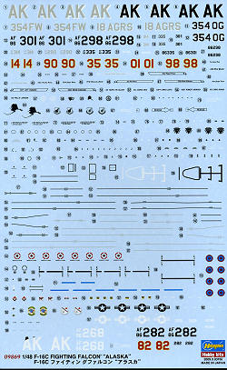 The decal sheet that comes with this kit is very large for an F-16. It includes what looks to be at least 7 options, though I could only decipher five of them on the decal placement guide on the back. Some of the colors on these planes require you to mix paints. This is probably because the shade is not part of the Gunze line and so no FS 595 reference number is available for it. The small photo you see in the history section shows two of these aircraft. While the pattern is basically the same, there are three color combinations provided by the color and markings guide. The decals themselves look to be superb so using them should be no trouble at all.