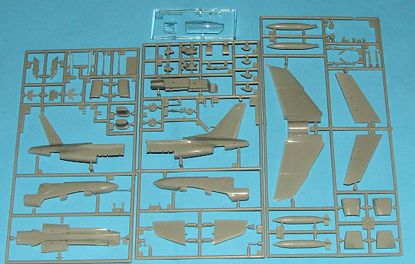 When one opens the box, it is pretty obvious that this is a Hasegawa kit. Same nicely done engraved panel lines, same fairly nicely done cockpit with decals for instruments and somewhat generic ejection seats. No detail on the cockpit sidewalls. The fuselage is divided into five sections. The nose is two pieces while the aft portion of the fuselage is three pieces. This latter method is done to give the proper 'gull' to the lower fuselage. This is the same as done with the Jaguar, A-6 and similar twin engine aircraft. The intakes have an insert plug that includes for forward section so no seam worries on that part. The landing gear are well formed and properly detailed. Nose weight is not shown, but it couldn't hurt to have