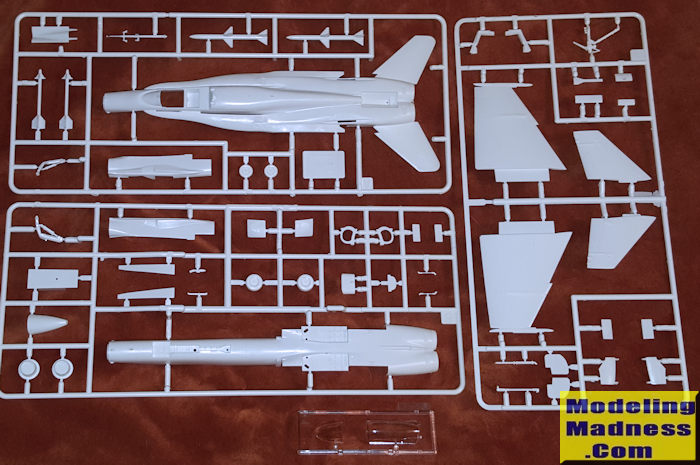 One thing this kit is lacking that later kits have are pylons and external fuel tanks. This kit has a smooth lower wing, something added with the newer tooling that included the wing, stabs, upper fuselage and fins. As usual, decals are used for the instrument panel.