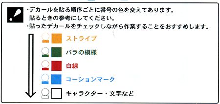 out. Reader Phil Laskey has told me these read as "Stripes, Roses, white outlines, caution mark, character. Hasegawa decals are currently quite good and while not as opaque as most