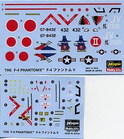 Markings are for two planes. One from 302 Sq JASDF and the other from the 388 TFW in SEA camo. Neither marking option is specifically identified. You might also notice that there is no back-seater as any 'real' F-4 would have. Decals are the usual thick and semi-transparent Japanese stuff, but finding alternatives won't be easy. What has been added is a second smaller sheet with more accurate stencil markings for the USAF and JASDF versions. The painting guide